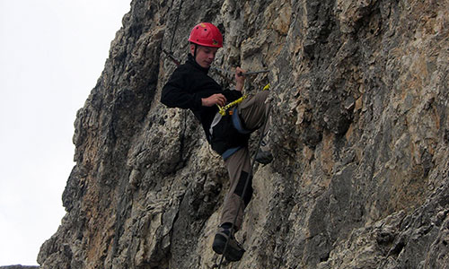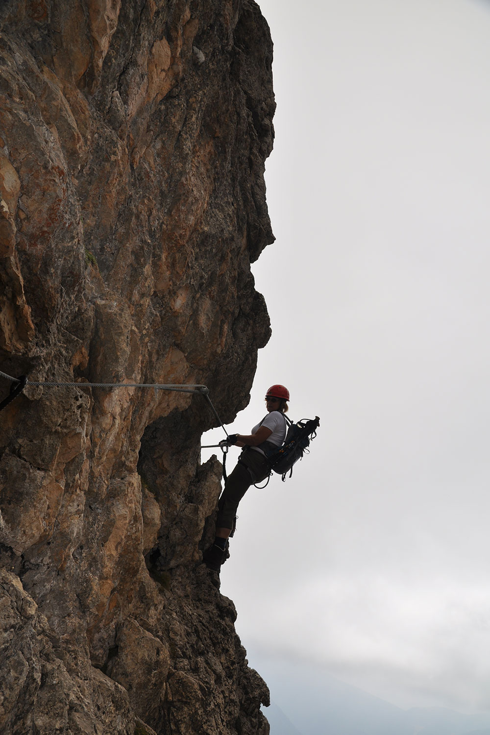 Der Laurenzi Klettersteig führt durch ein Hochalpines bisher selten begangenes Gebiet zwischen Tierser Alpl und Antermoja. Nordseitig, die steilen Abbrüche bis ins güne Durontal und der weiten Seiser Alm. Südseitig die gewaltige Kulisse von Kesselkogel - Rosengarten, der Pala Gruppe, bis hin zur Königin der Dolomiten, der Marmolada 3343m. Wegverlauf: Hotel Piné(Weißlahnbad) ins Tschamintal, durchs Bärenloch zum Tierser Alpl 2441m. Vom Schutzhaus Tierser Alpl in Richtung Rosengarten, ca. 250m vor dem Molignon-Pass, erreicht man auf guten und markierten Steigspuren in östlicher Richtung in ca. 5-10 Minuten das erste Seil. Gerade hinauf zum Kamm, über diesem weiter- auf das Hochplateau des nordwestlichen Molignon, hinauf zu dessen Gipfel, 2778m. Dann in östlicher Richtung weiter zum eigentlichen Einstieg ca. 2763m (die Schwierigen Stellen sind mit Drahtseilen gesichert). Kurz steil hinunter, dann mehr oder weniger über den Grat (rechts-links wechselnd) mit mehreren Einschartungen, bis zu einer grösseren Scharte. Hier sehr steil (schwierig) hinunter zu einer weiteren Scharte, kurz durch eine Rinne und Wandquerung nach Südosten zu einem breiten Band, auf diesem wieder hinauf auf den Grat, ostwärts weiter zur breiten Gipfelkuppe des mittleren Molignon 2845m (hier dunkle Lavaausbrüche inmitten des Kalkgesteins). Über diese leicht abwärts, dann südseitig absteigend zum Antermoja-See, 2487m.Gehzeit: Berghotel Piné bis Tierser Alpl ca. 4 Stunden, Tierser Alpl bis Antermoja-See ca. 4 Stunden, Molignongipfel ca. 1 1/4 Stunden. Anforderung: sehr schwierig, der Laurenzi - Klettersteig ist nichts für Anfänger. Schwindelfreiheit und Trittsicherheit sind unbedingt erforderlich.