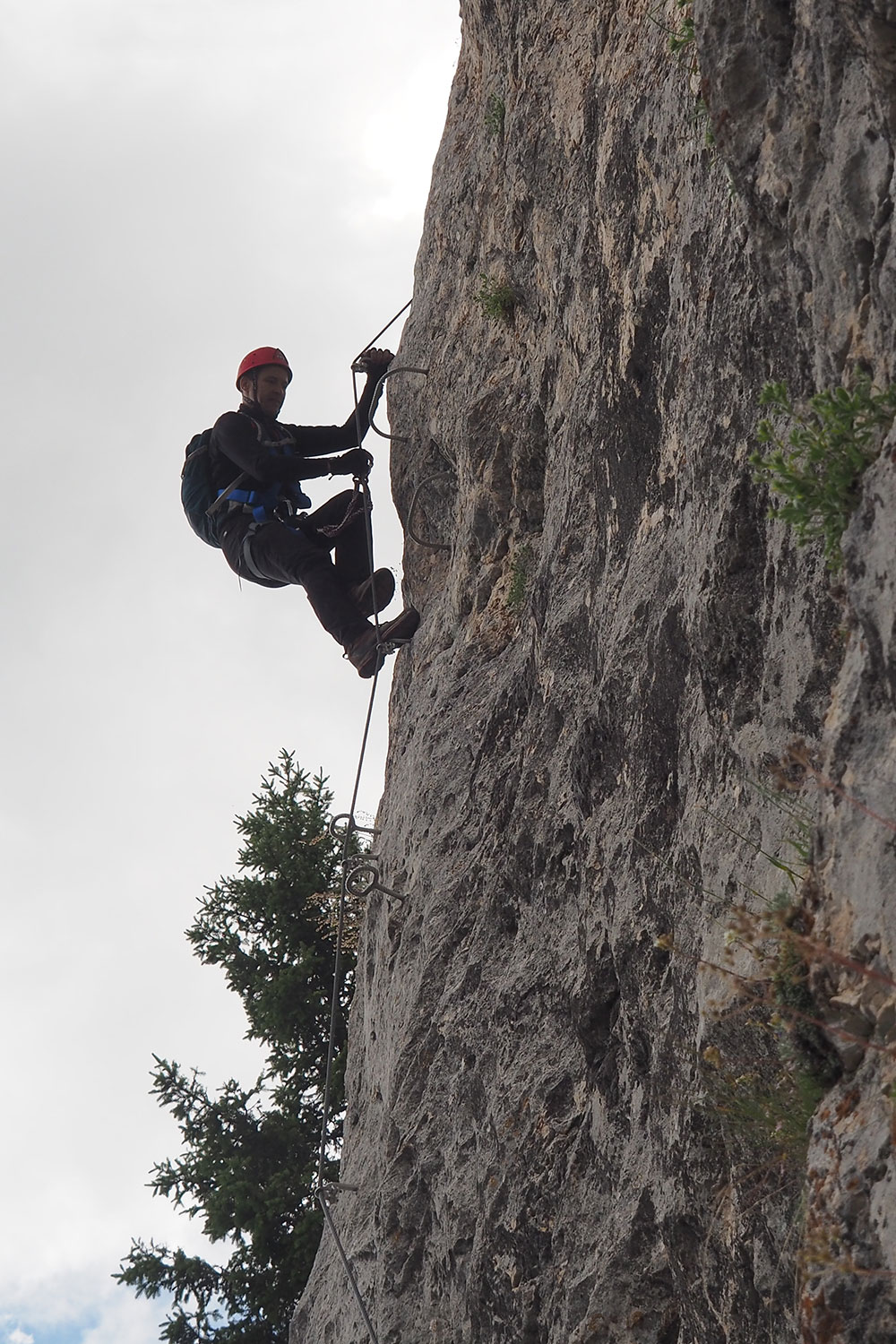 Der Laurenzi Klettersteig führt durch ein Hochalpines bisher selten begangenes Gebiet zwischen Tierser Alpl und Antermoja. Nordseitig, die steilen Abbrüche bis ins güne Durontal und der weiten Seiser Alm. Südseitig die gewaltige Kulisse von Kesselkogel - Rosengarten, der Pala Gruppe, bis hin zur Königin der Dolomiten, der Marmolada 3343m. Wegverlauf: Hotel Piné(Weißlahnbad) ins Tschamintal, durchs Bärenloch zum Tierser Alpl 2441m. Vom Schutzhaus Tierser Alpl in Richtung Rosengarten, ca. 250m vor dem Molignon-Pass, erreicht man auf guten und markierten Steigspuren in östlicher Richtung in ca. 5-10 Minuten das erste Seil. Gerade hinauf zum Kamm, über diesem weiter- auf das Hochplateau des nordwestlichen Molignon, hinauf zu dessen Gipfel, 2778m. Dann in östlicher Richtung weiter zum eigentlichen Einstieg ca. 2763m (die Schwierigen Stellen sind mit Drahtseilen gesichert). Kurz steil hinunter, dann mehr oder weniger über den Grat (rechts-links wechselnd) mit mehreren Einschartungen, bis zu einer grösseren Scharte. Hier sehr steil (schwierig) hinunter zu einer weiteren Scharte, kurz durch eine Rinne und Wandquerung nach Südosten zu einem breiten Band, auf diesem wieder hinauf auf den Grat, ostwärts weiter zur breiten Gipfelkuppe des mittleren Molignon 2845m (hier dunkle Lavaausbrüche inmitten des Kalkgesteins). Über diese leicht abwärts, dann südseitig absteigend zum Antermoja-See, 2487m.Gehzeit: Berghotel Piné bis Tierser Alpl ca. 4 Stunden, Tierser Alpl bis Antermoja-See ca. 4 Stunden, Molignongipfel ca. 1 1/4 Stunden. Anforderung: sehr schwierig, der Laurenzi - Klettersteig ist nichts für Anfänger. Schwindelfreiheit und Trittsicherheit sind unbedingt erforderlich.